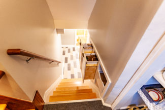 Another creative solution is to maximize the use of your basement stairwell. If the structure of your home allows for it, consider adding drawers or cabinets along the stairwell for hidden storage that doesn’t take up limited floor space.