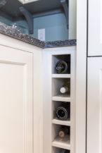 Creating shallow cabinets around your refrigerator takes a potential wasted corner space and creates additional pantry space or even a small broom closet. And then there’s always the option to take a small corner and turn it into a functional wine storage!