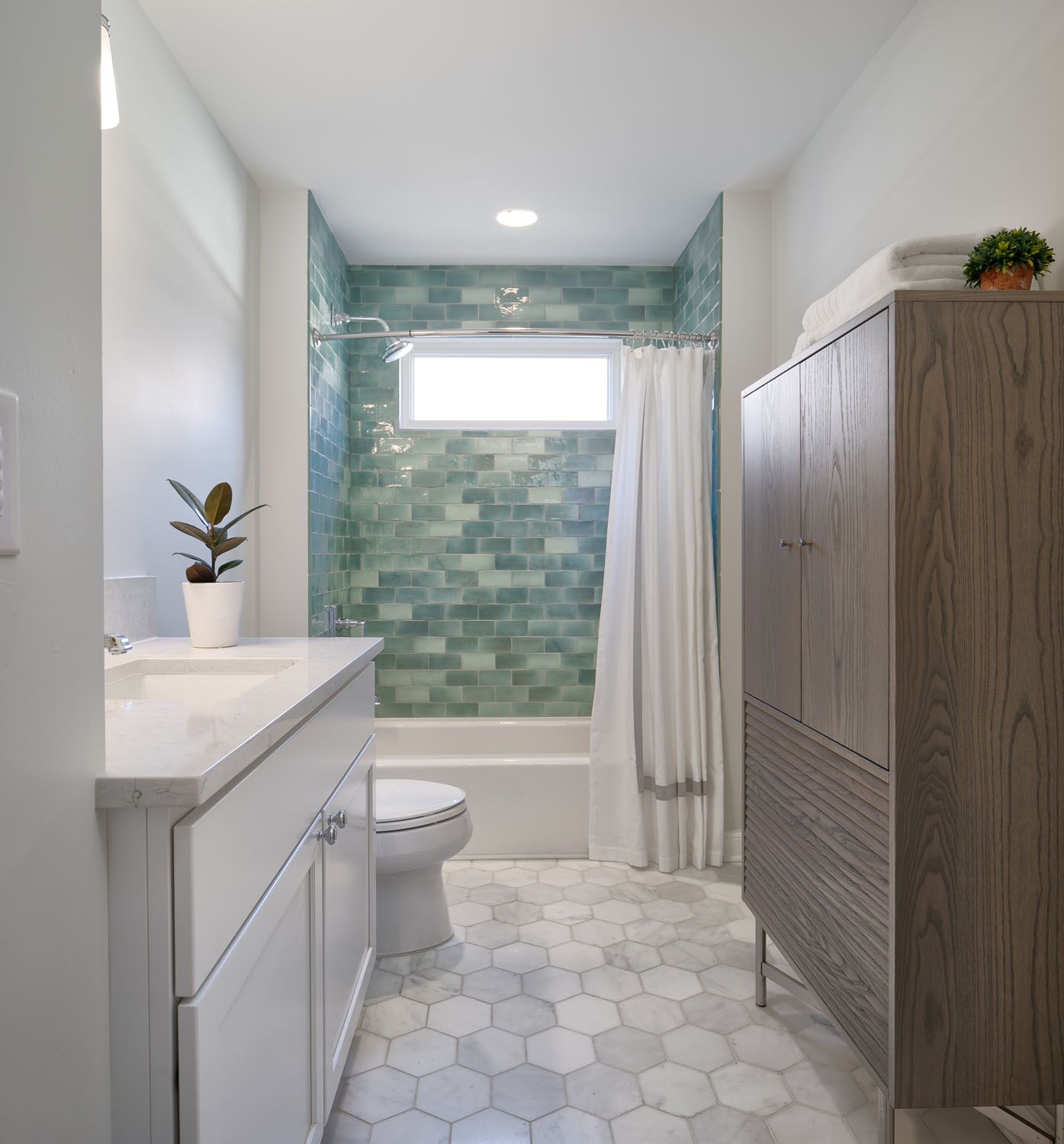 Bathroom update, full gut, added window in shower, marble floor and ceramic tile that looks handmade on walls.