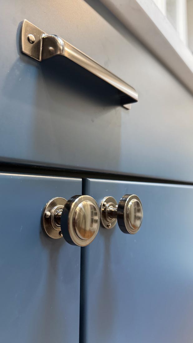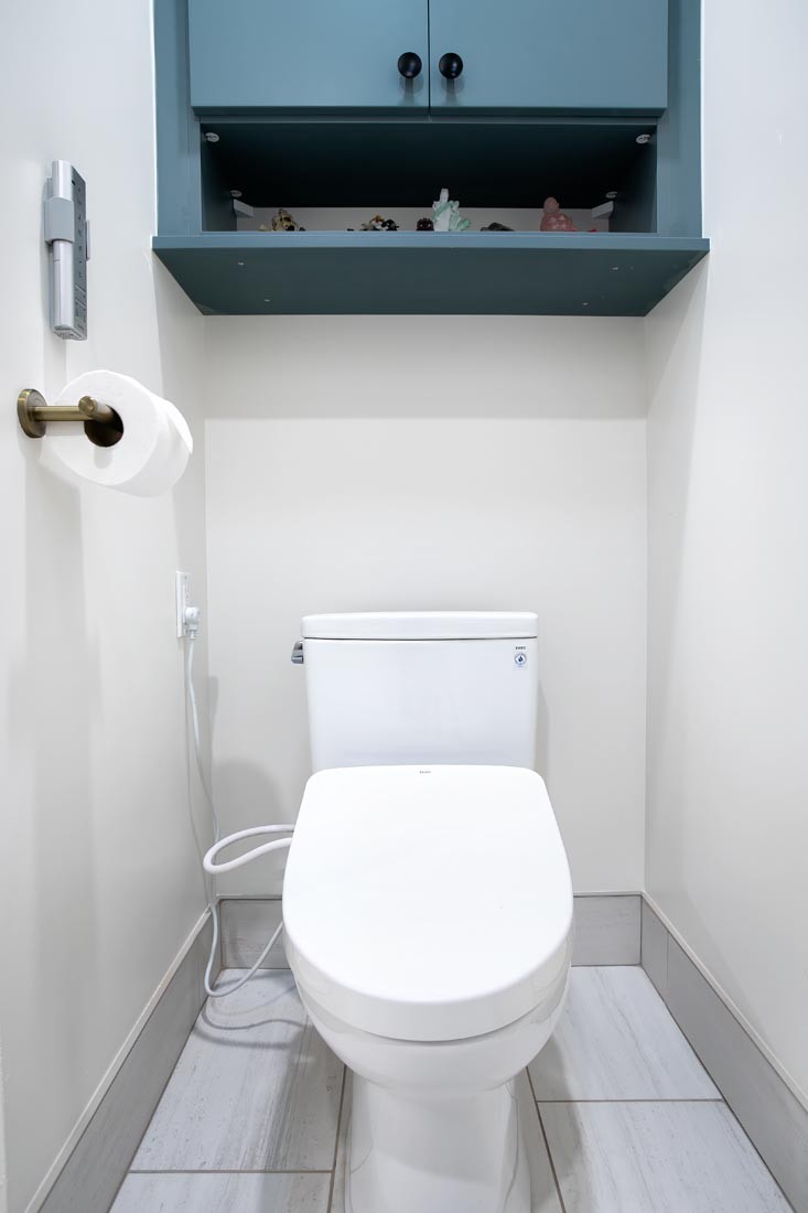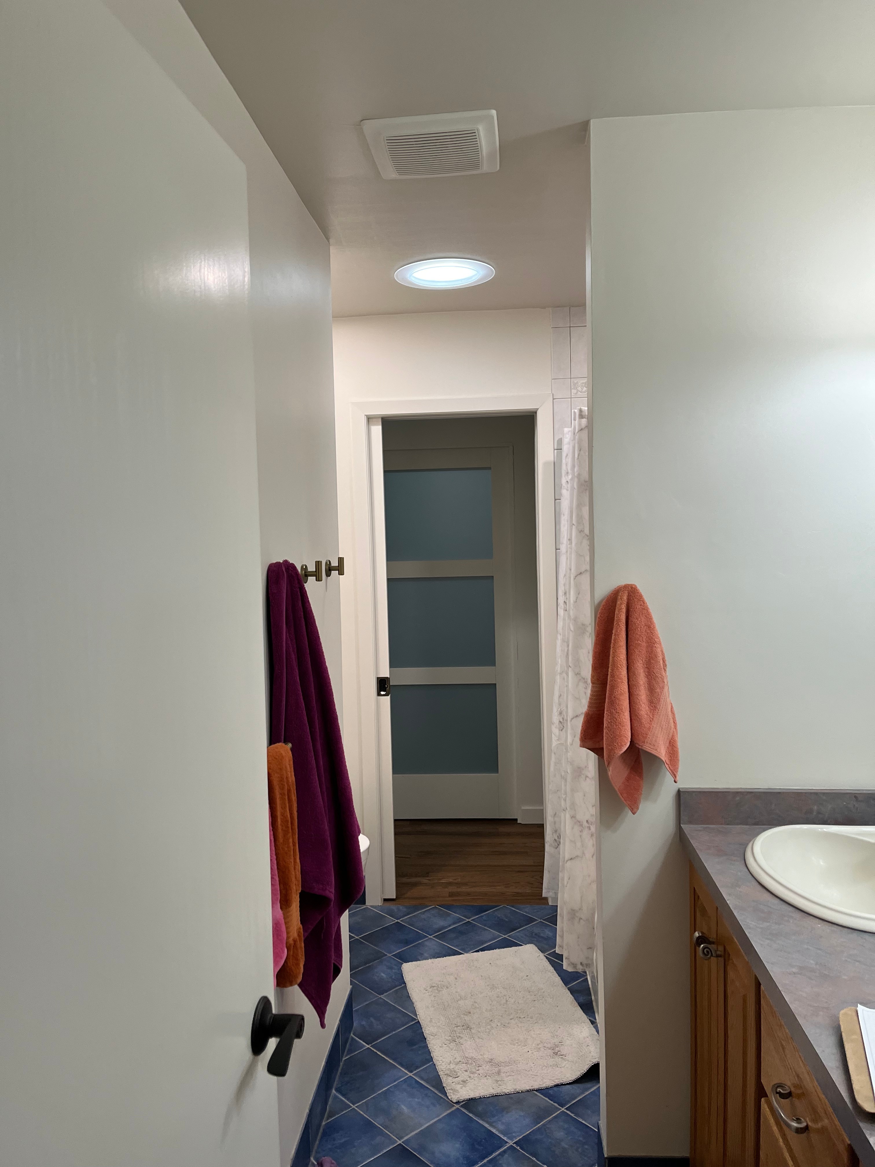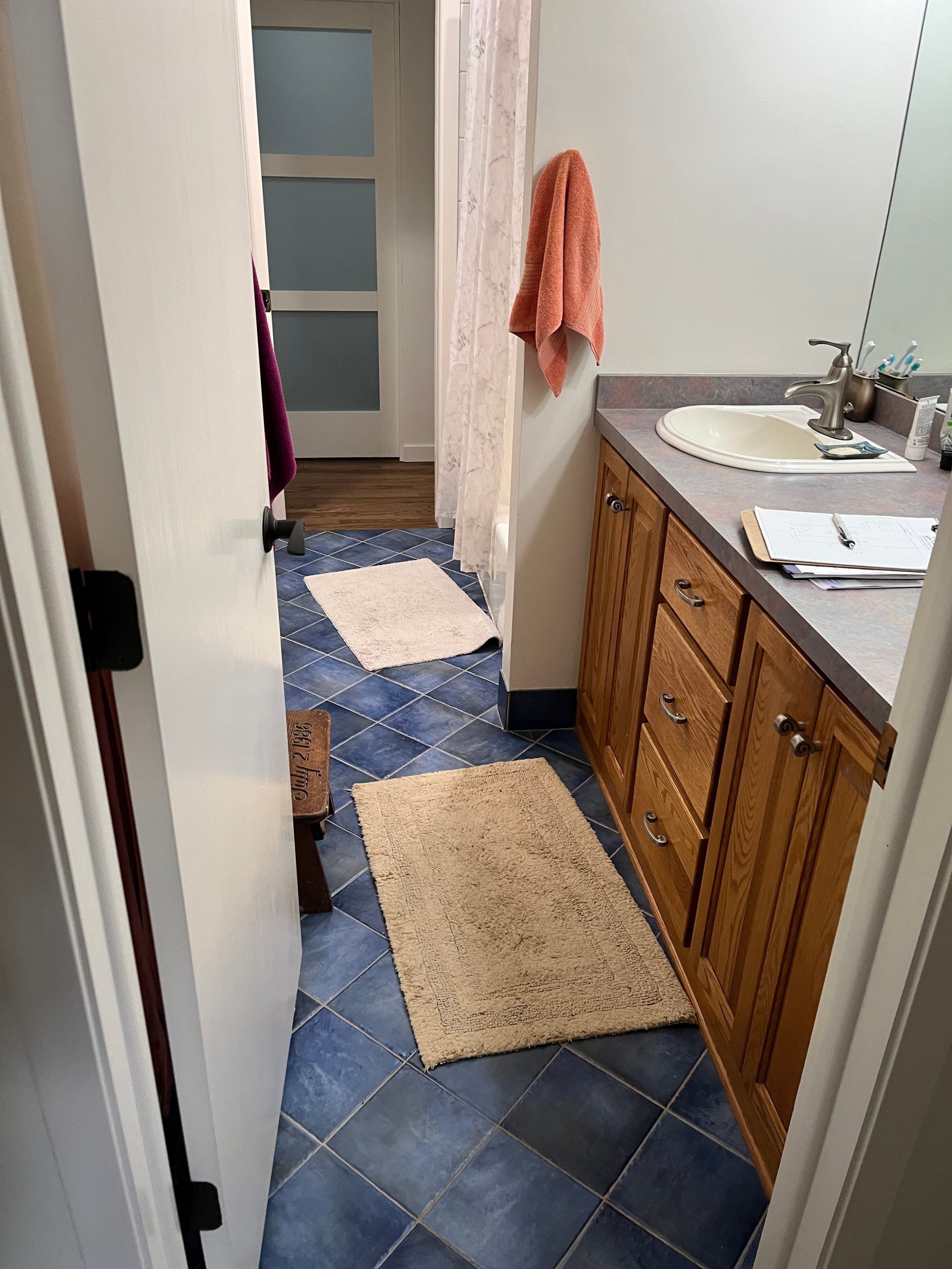 The kitchen remodel captured more of the available space, expanding the countertops and cabinetry. Reconfiguring the layout a bit has gone a long way to allow for more cooks to be in the kitchen at one time. Another big change is the updated selections and fixtures. Navy blue, white and stained cabinetry mix together providing eye catching contrast. Tile backsplash was installed that incorporates locally hand made tile. The varying color and tile play well together and help speak to the client’s personalities.