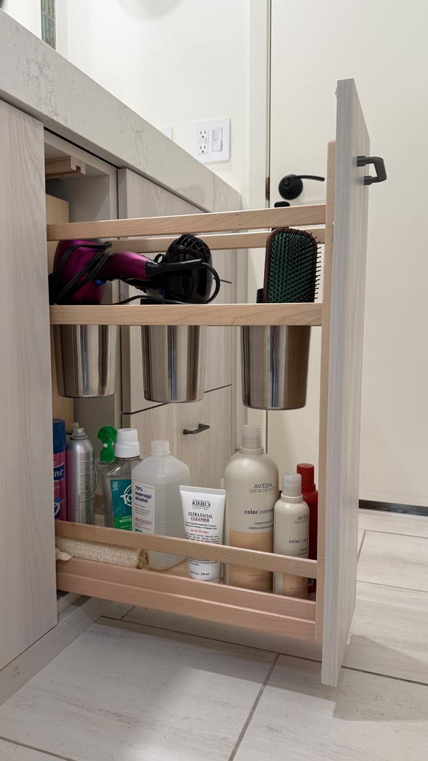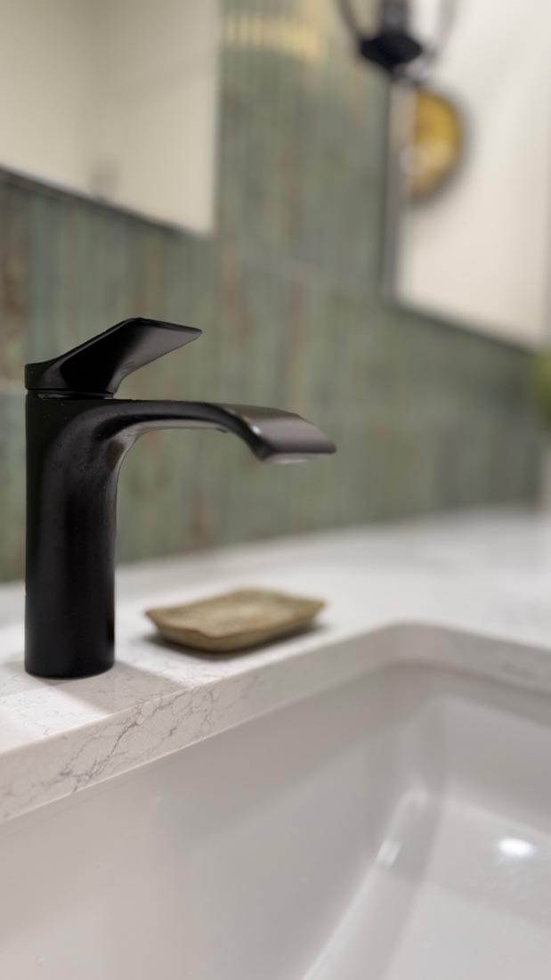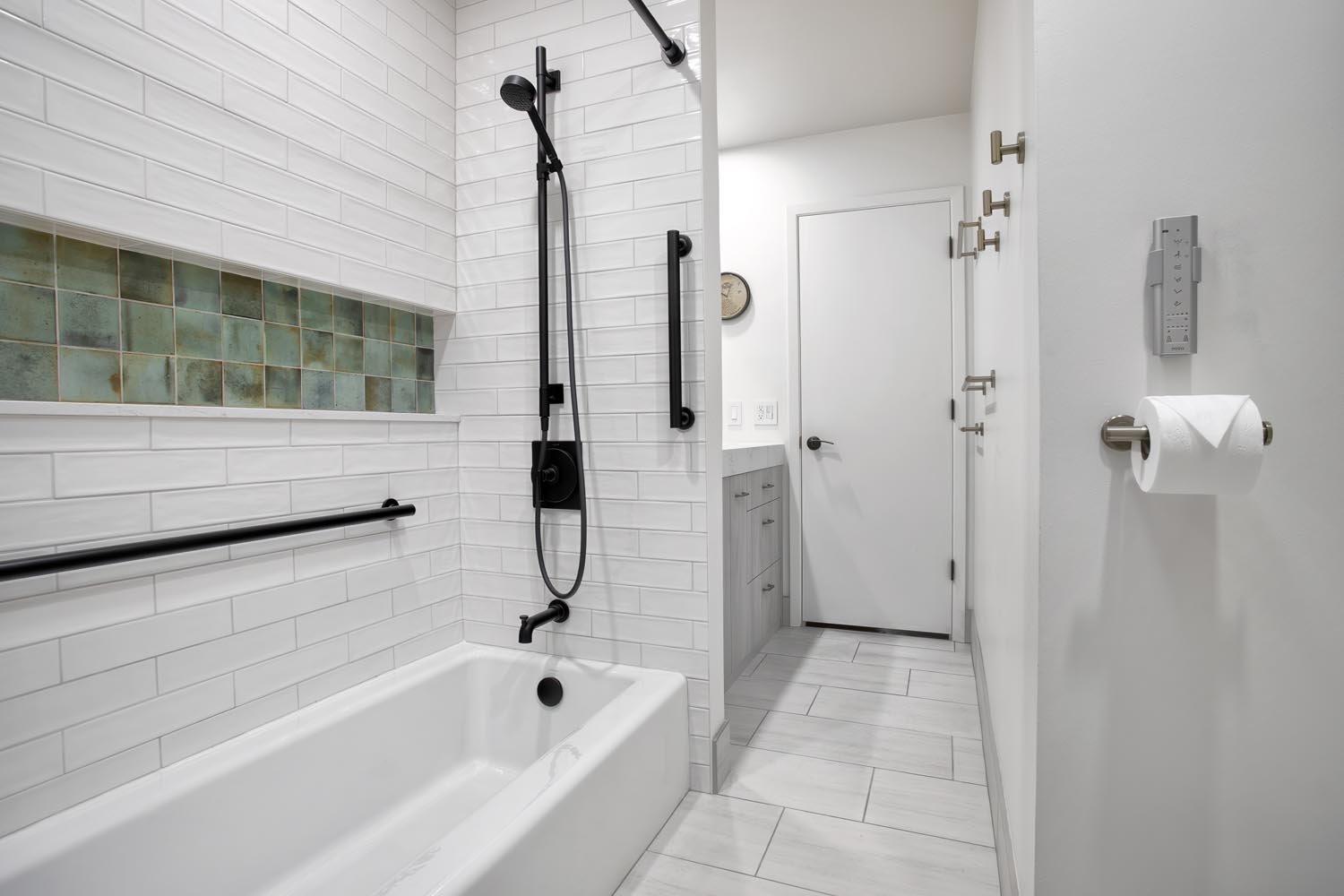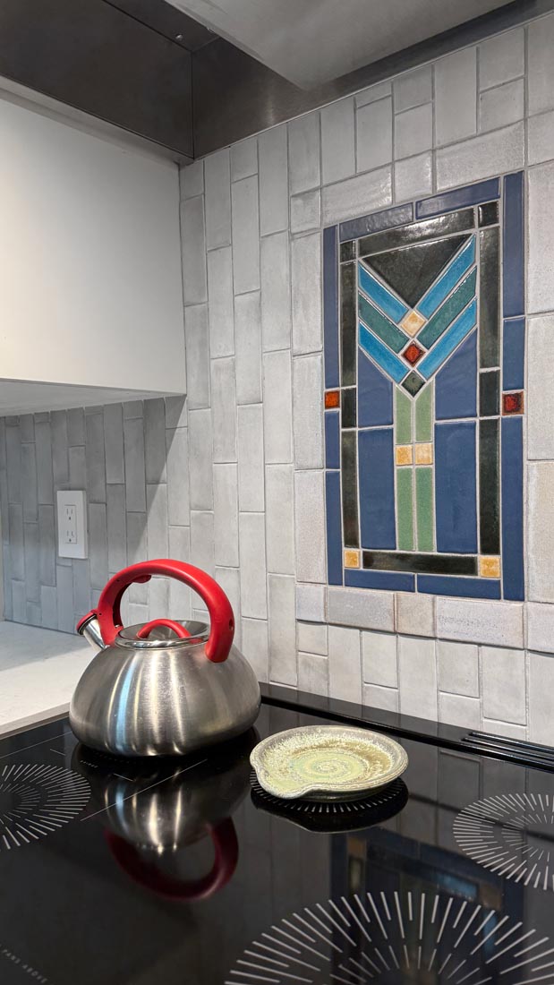 All cabinetry installed by Castle is from Crystal Cabinetry. The handmade tile is from Clay Squared. All countertops are Corian Quartz.